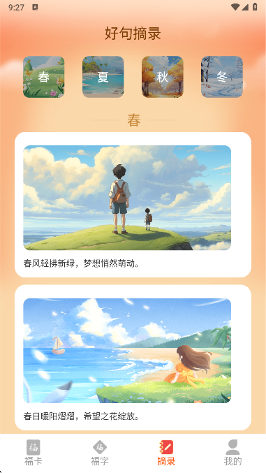 4、点击摘录,也是提供到了趣味的心情语录