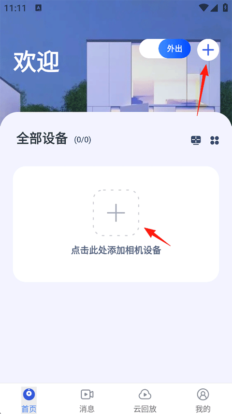 1、打开小蚁智能APP,在首页点击添加相机设备;
