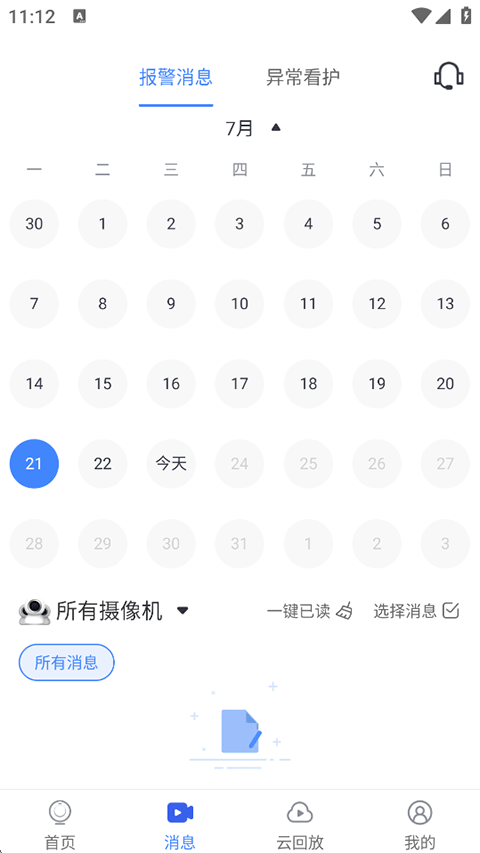 4、在消息页还可以查看每日实时报警信息和异常看护功能;