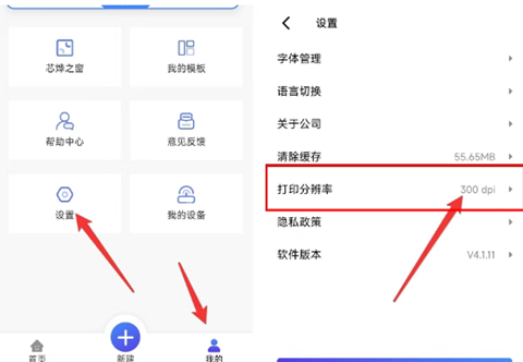 1、如果打印机是300DPI分辨率的机型(例如:335B.H500E.451E )APP软件里面需要选择300dpi。方法:点击我的-设置-打印机分辨率去选择。