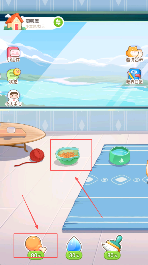 4、进入养宠页面开始喂食开启互动养成进行照料,进行日常照料操作开启宠物养成之旅体验乐趣。