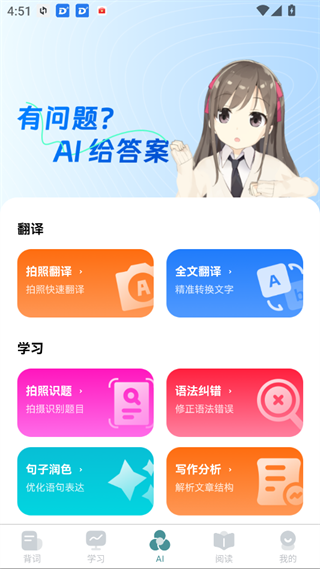 ・单词详解(变格规则/体搭配/近义词辨析)+ 实时拍照翻译(菜单/路牌)