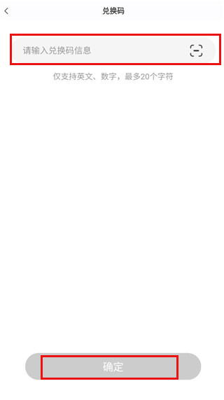 2、在输入栏输入兑换码信息后点击确定即可