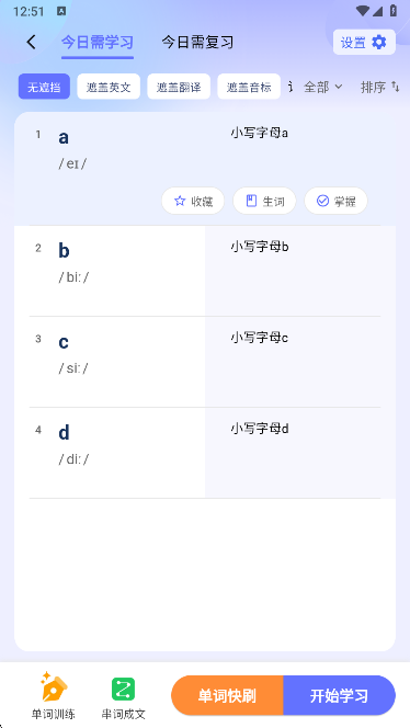 4、在保存完计划后,再次点击背单词即可开始学习