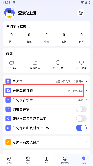 2、进入首页后就可以看到背单词功能了