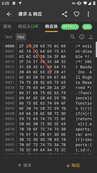 点击目标数据即可查看响应体内的详细内容,并且支持切换为文本格式、Hex格式等多种视图进行查看和分析。