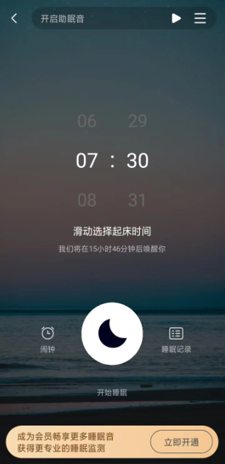 智能闹钟,帮助您在较轻的睡眠醒来,让你醒来时清爽温柔。