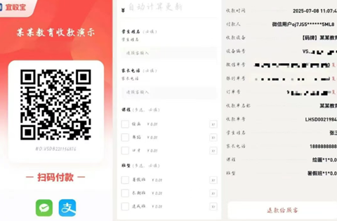如果有收款难统计,出现错收漏收的问题,可以使用乐刷宜收宝收款单。家长付款强备注,防遗漏,课程价目清单界面清爽不繁琐,可根据自由置。