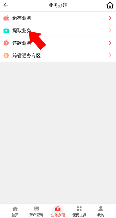 2、来到业务办理界面后,选择提取业务选项