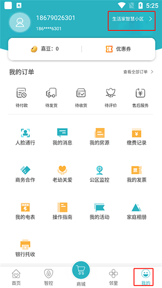 1、点击进入软件,选择我的,现在生活家智慧小区;