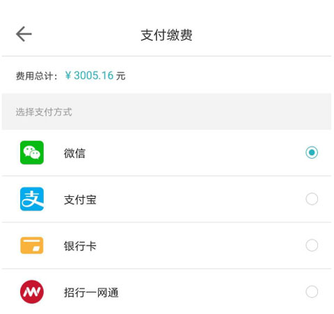 3、点击立即缴费按钮,选择微信/支付宝/银行卡等方式进行缴费即可。