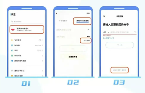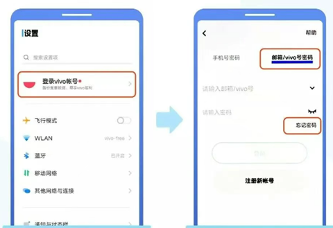 1、未登录vivo帐号:进入“设置”>登录“vivo帐号”>“帐号密码登录”>“忘记密码”,填写你的vivo帐号后,根据提示操作即可。
