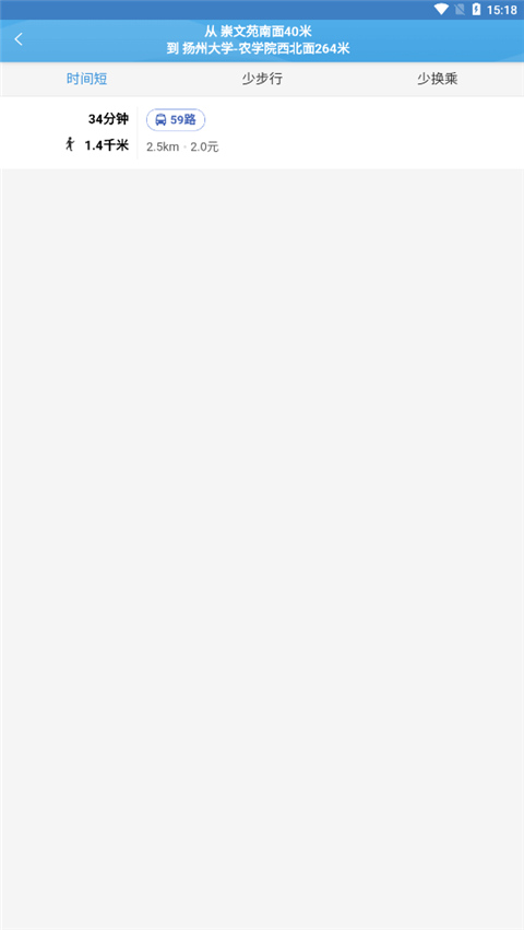 5、另外点击导乘板块中,我们输入起点和终点并对其搜索,即可为我们推荐时间短、少步行、少换乘三种方案。