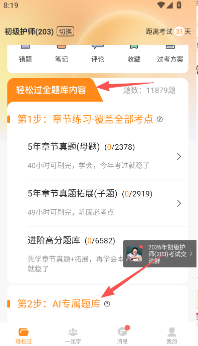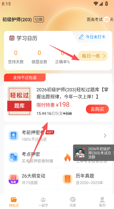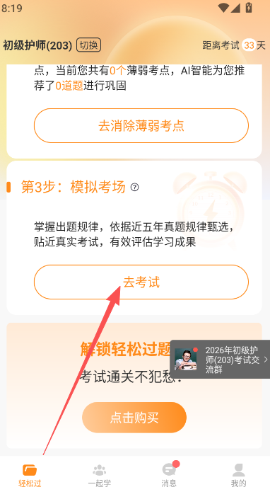 1、在软件首页轻松过版块,可以点击选择各个题库部分。