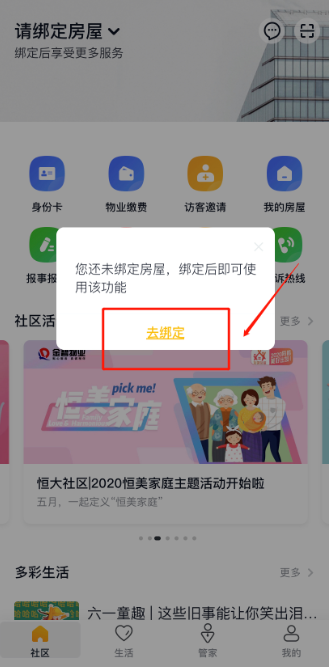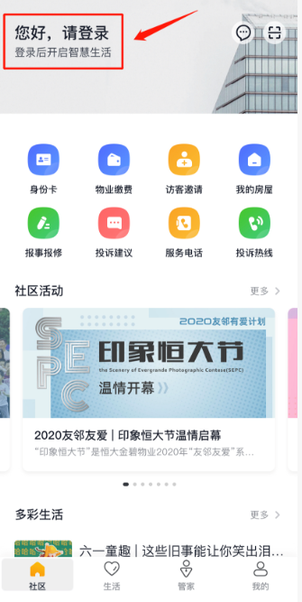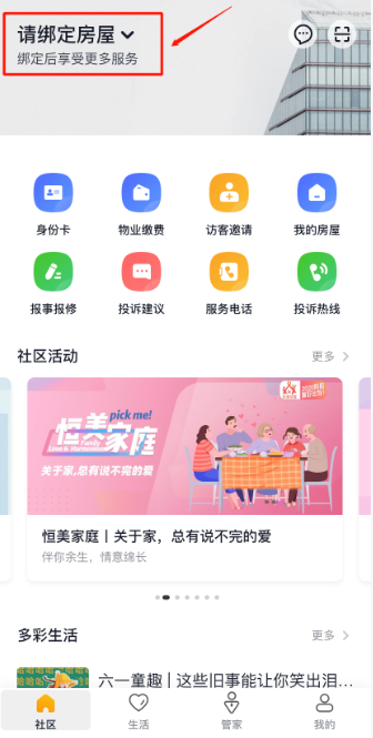 7、在APP“社区”首页 点击“身份卡”即可查看业主身份