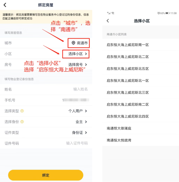 4、点击“选择小区”-选择“启东恒大海上威尼斯”