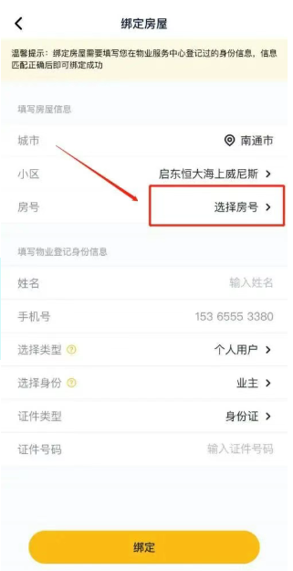 3、点击绑定房号