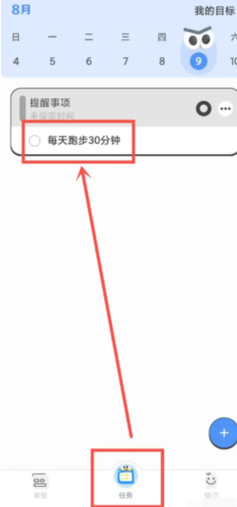 1、首先打开搭子计划APP,进入任务界面并选定需要设置的目标任务。