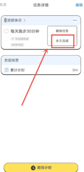 3、随后界面会显示“删除任务”或“永久完成”两个选项供用户选择。