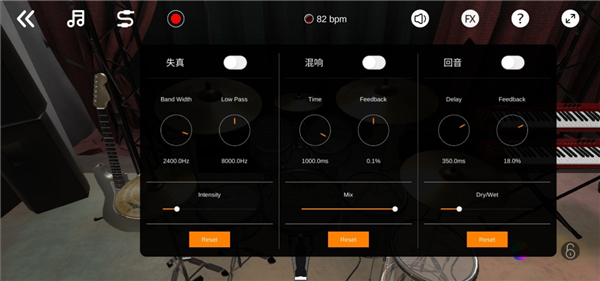 1、打开软件在界面选择模式在场景点击FX可以设置特殊音效,以达到用户的演奏效果。
