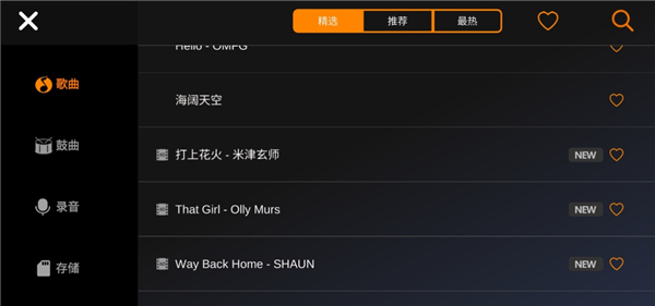3、点击音乐图标,可以选择歌曲以及鼓曲。