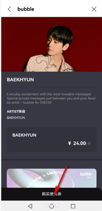 1、在Bubble软件的泡泡专区中,首先选择并购买你喜欢的爱豆的泡泡服务。