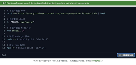 这里是要在WSL里安装Node.js;