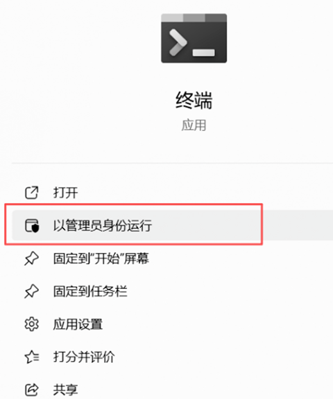 2. 搜索PowerShell,右键选择以管理员身份运行。