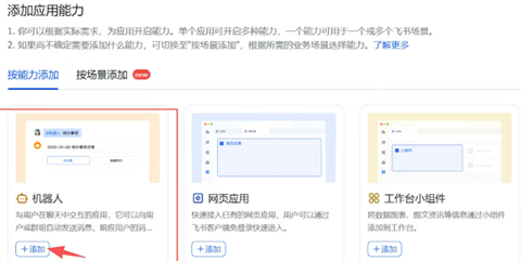 添加应用能力,选择机器人添加;