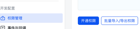 选择权限管理,点击批量导入权限,复制下面的json内容,申请配置权限。