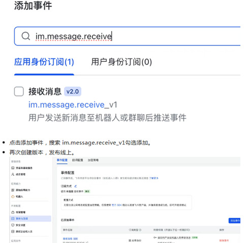然后再到飞书里,选择配置事件订阅,选择长连接,保存。