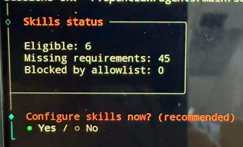 然后会跳出问你要不要设置“Skills”相当于给你的AI Agent;