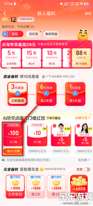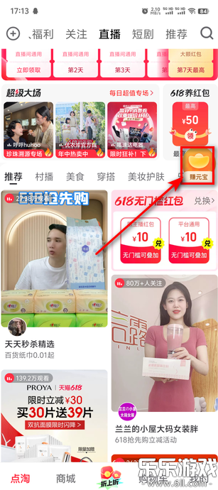 1.首先点击赚元宝