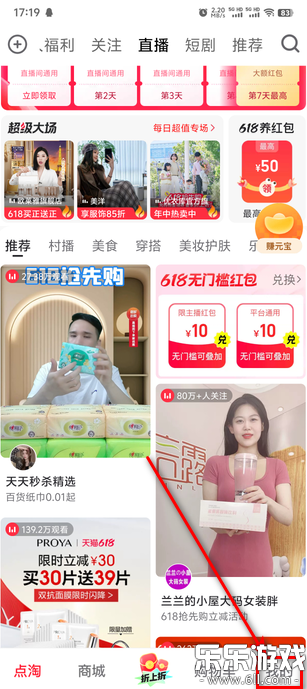 启动点淘APP后,切换至首页的“直播”频道。
