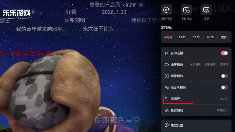 2、点击屏幕并选择右上角的三点选项中的画面尺寸;