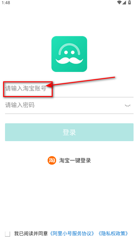 1.进入app输入,淘宝账号