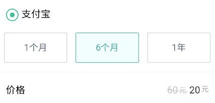 2.六个月60元,优惠价20元