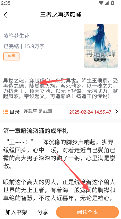 2、阅读小说简介部分,对于你之后看小说全文搞清楚故事脉络是非常的有必要的。