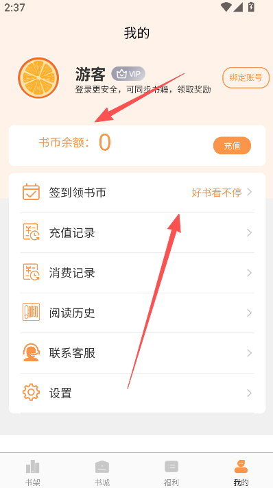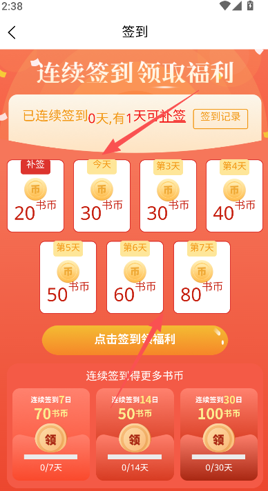 3、签到则是每天上线都能够获得一定数额的书币,不过数量比较少,需要长此以往坚持。