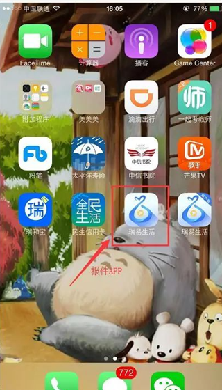 2、返回手机主屏幕,点击打开已安装的瑞银信APP。