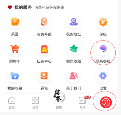 1、点击我的页面,选择我的服务中《联系客服》