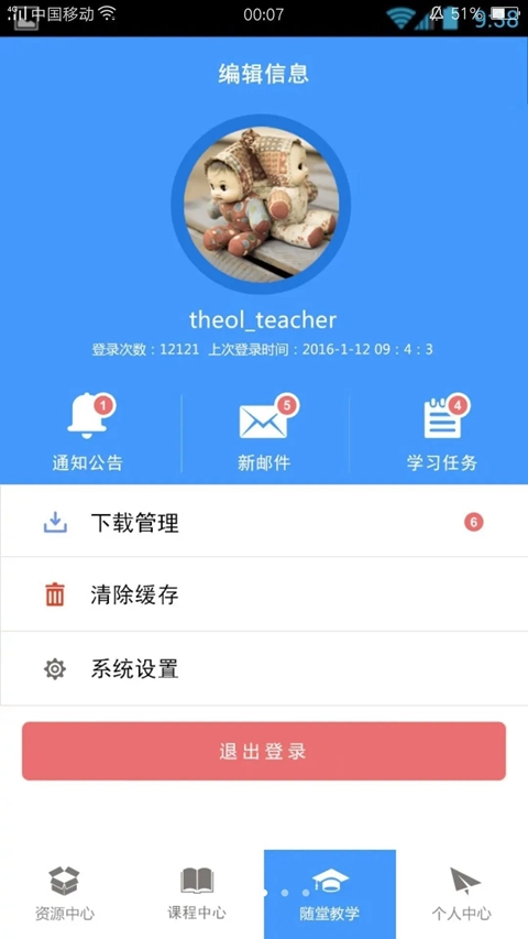 2、屏幕下方分为消息中心、课程中心、随堂教学、个人中心;
