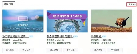 点击上方导航进入“个人空间”,点击“课程列表”右侧“更多”,进入新页面,如下图所示: