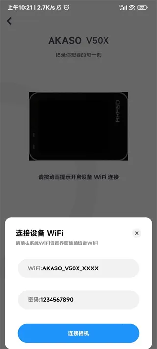 很多人来问阿卡为什么总是卡在连接WIFI的界面,这里阿卡要温馨提示一下,首先先检查相机是否已经是最新版本的了,阿卡的最新版会持续发布在应用宝里奥!目前AKASO GO最新版本是3.12.29!!其次查看是否对AKASO进行了定位授权,这也会影响连接WIFI。如果还是连接不成功,可以通过我的-我要反馈,直接可以反馈至我们的工程师处解决问题。