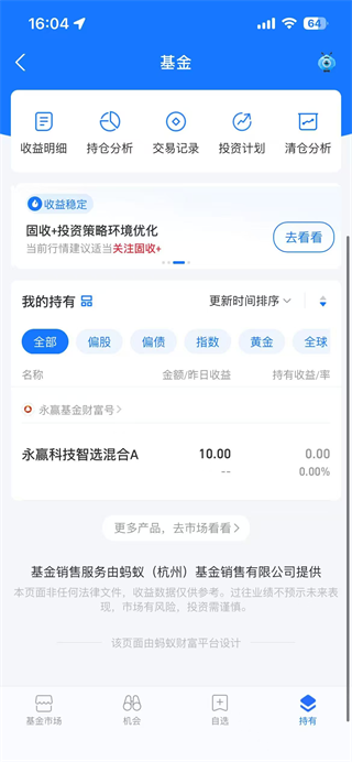 4、最后可以在首页持有查看已添加基金的状态!