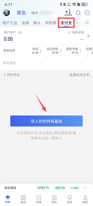 3、返回到新建的支付宝账户并点击【导入你的持有基金】。