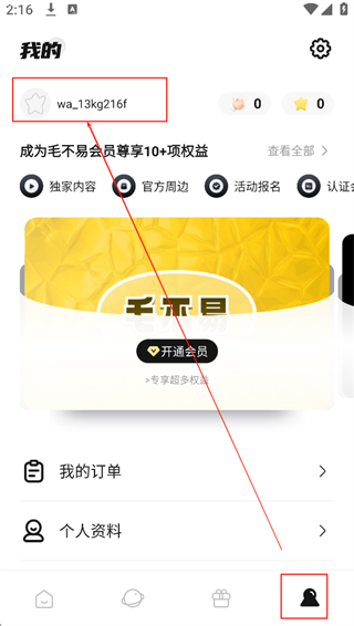 1、打开软件点击【我的】在点击【个人头像】