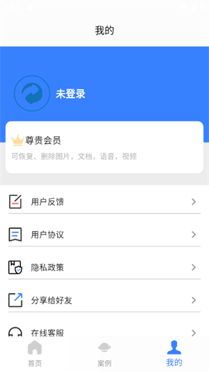 4、进入右下角“我的”界面,能够查看隐私政策、反馈使用问题、联系客服,同时支持登录账号和开通会员。