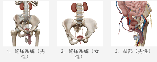 * 用于研究大体解剖的完整女性和男性3D模型。配合尸体和诊断图像查看这些模型。