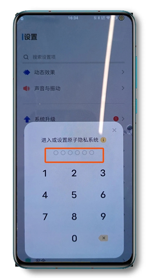 若之前设置了指纹或面部识别作为原子隐私系统的进入方式,可直接通过指纹或面部识别验证进入,无需输入密码。